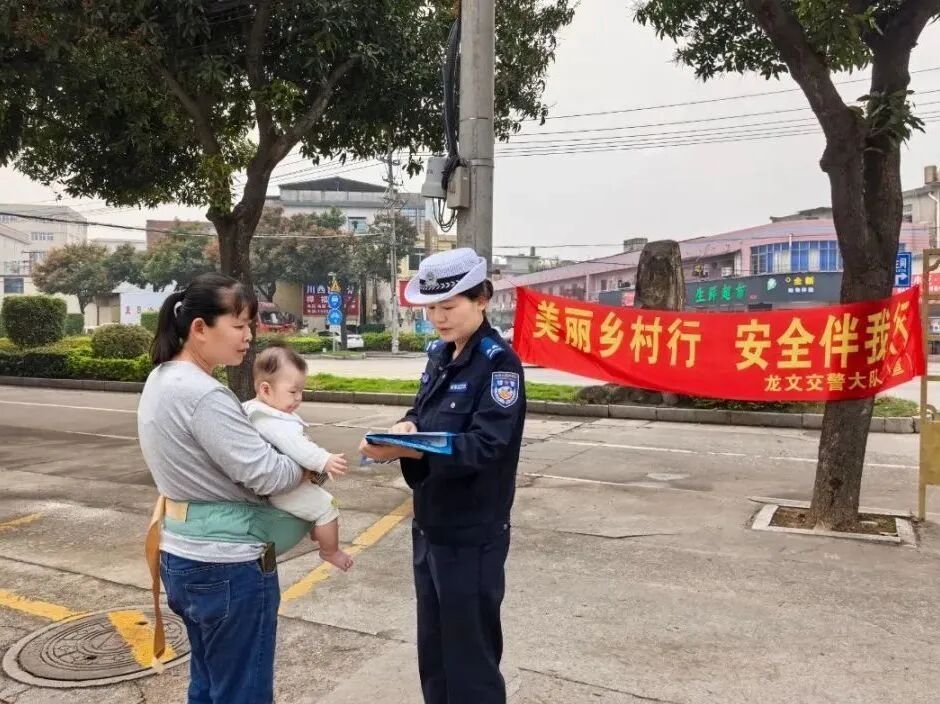 为引导市民、游客自觉遵守交通法规,文明参与出行,漳州交警在重点路口、路段设置交通劝导点,组织警力、志愿者开展路面交通劝导活动。 安全宣传筑防线