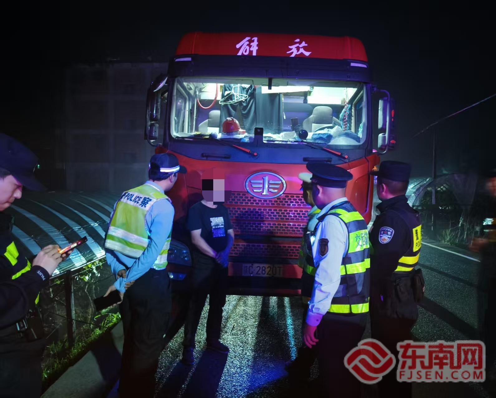 事故现场。宁德高速行政执法支队供图 面对案情,执法人员梳理案件脉络,依托联动机制,联合高速交警、属地派出所锁定车辆行踪。4月16日晚,依靠公安部门专业技术侦查手段,精准研判、合力围堵,最终在福安赛湾路徐江村附近成功截获这辆肇事逃逸车辆。在完整确凿的证据面前,当事人如实承认自身超限运输、冲关逃逸、损坏公路路产的违法事实,目前案件正依法依规进一步办理中。