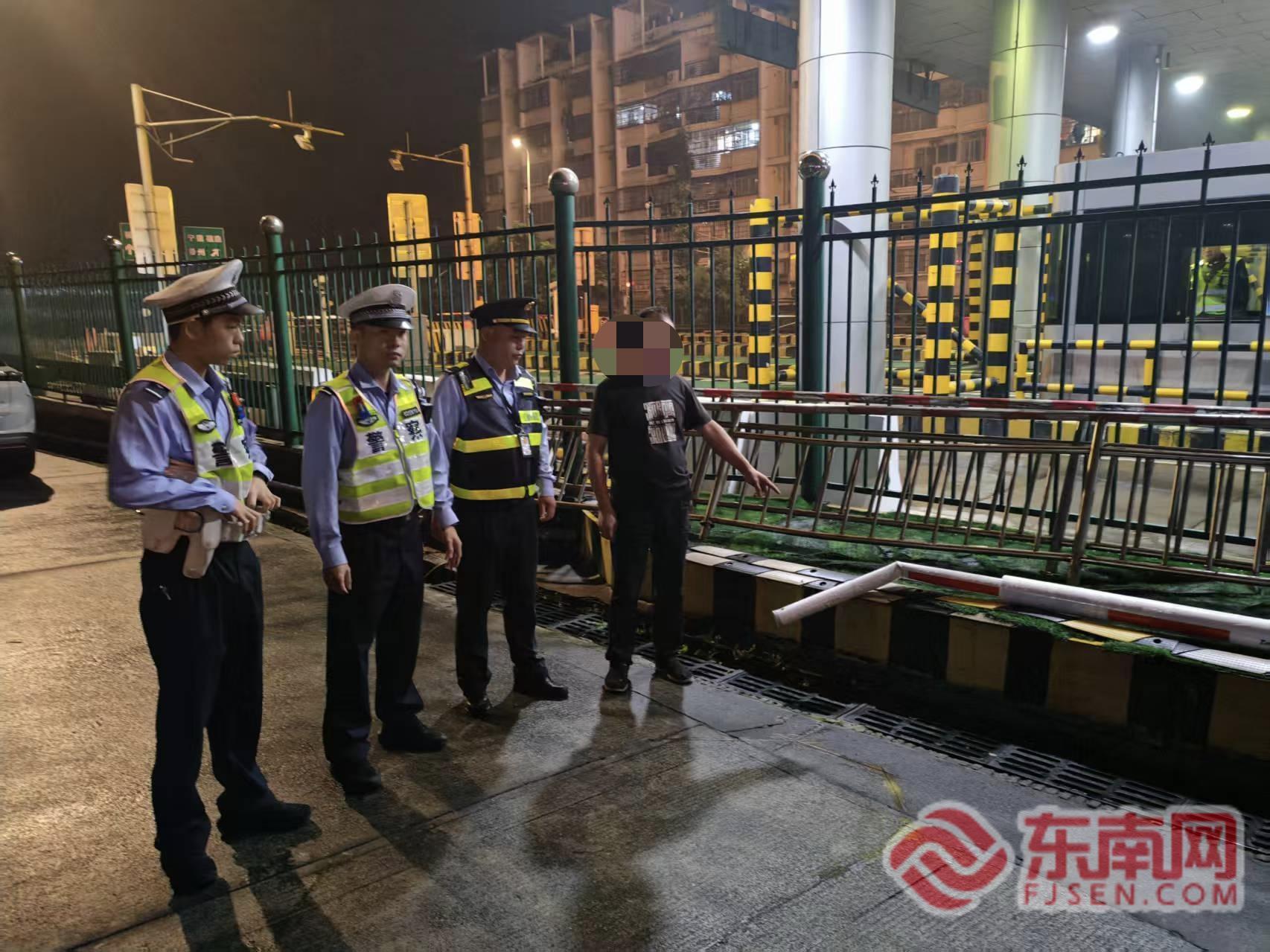 事故现场。宁德高速行政执法支队供图 4月13日深夜0时,一辆货运车辆行经宁上高速赛岐收费站时,不顾收费人员的劝阻,强行加速冲关,车辆的冲击力直接造成收费站设施及公路路产损坏,严重扰乱了高速公路正常通行秩序。案发后,宁德高速行政执法支队执法人员迅速赶赴现场,第一时间开展案件处置工作,前往收费站全面调取监控视频、音频资料,细致核查案件经过,开展车辆线索摸排,固定车辆违法事实,经核查,查实该车辆涉嫌超限运输,驾驶人存在逃避超限违法查处,实施恶意冲关逃逸行为。